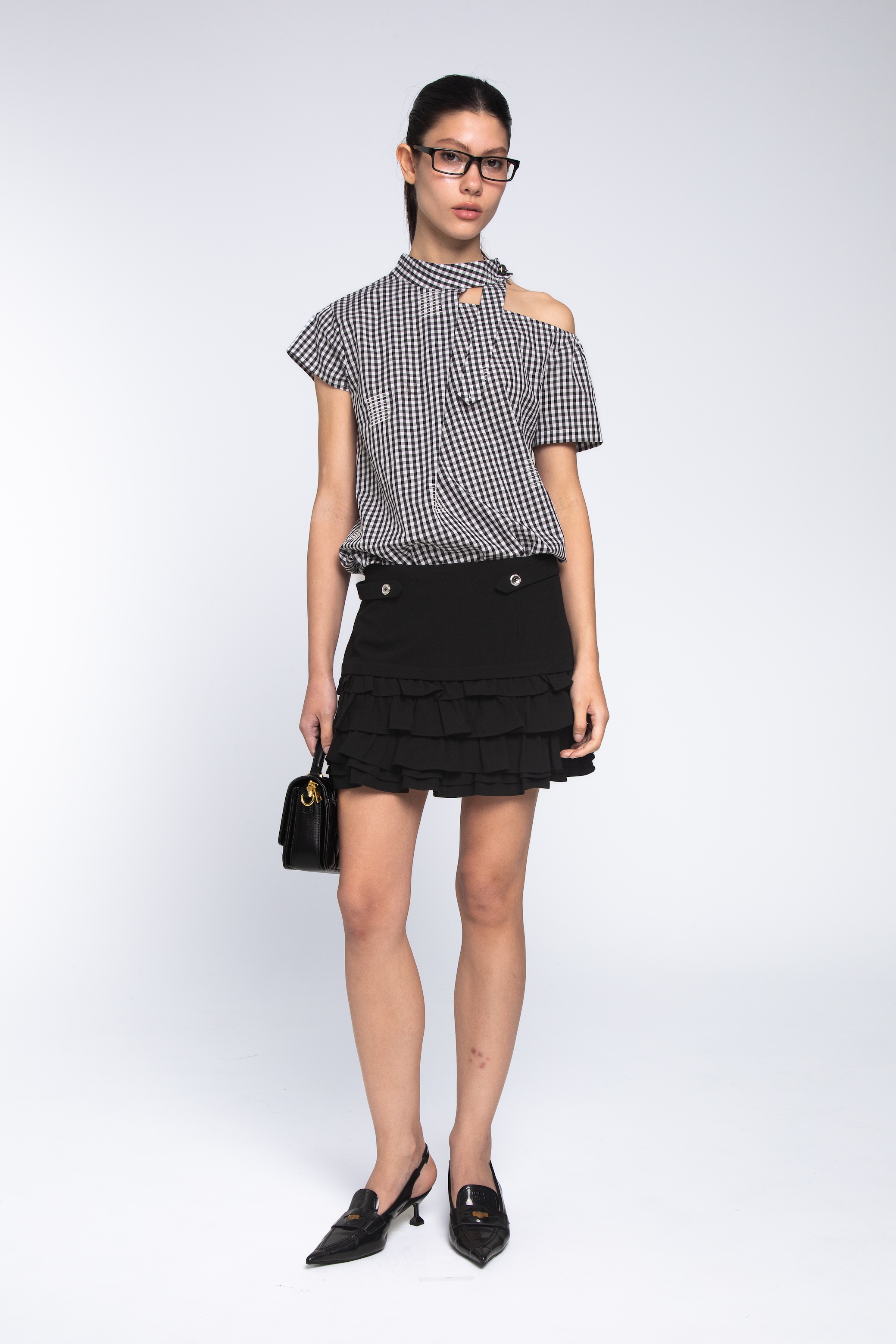 這款A字階層短裙,以極致百搭且具備強大收縮顯瘦效果的經典純黑為基調。將上半部的平整修身與下半部的浪漫層次相結合,在走動之間散發出俏麗靈動的氣息,同時不失都會女性的精緻與俐落。