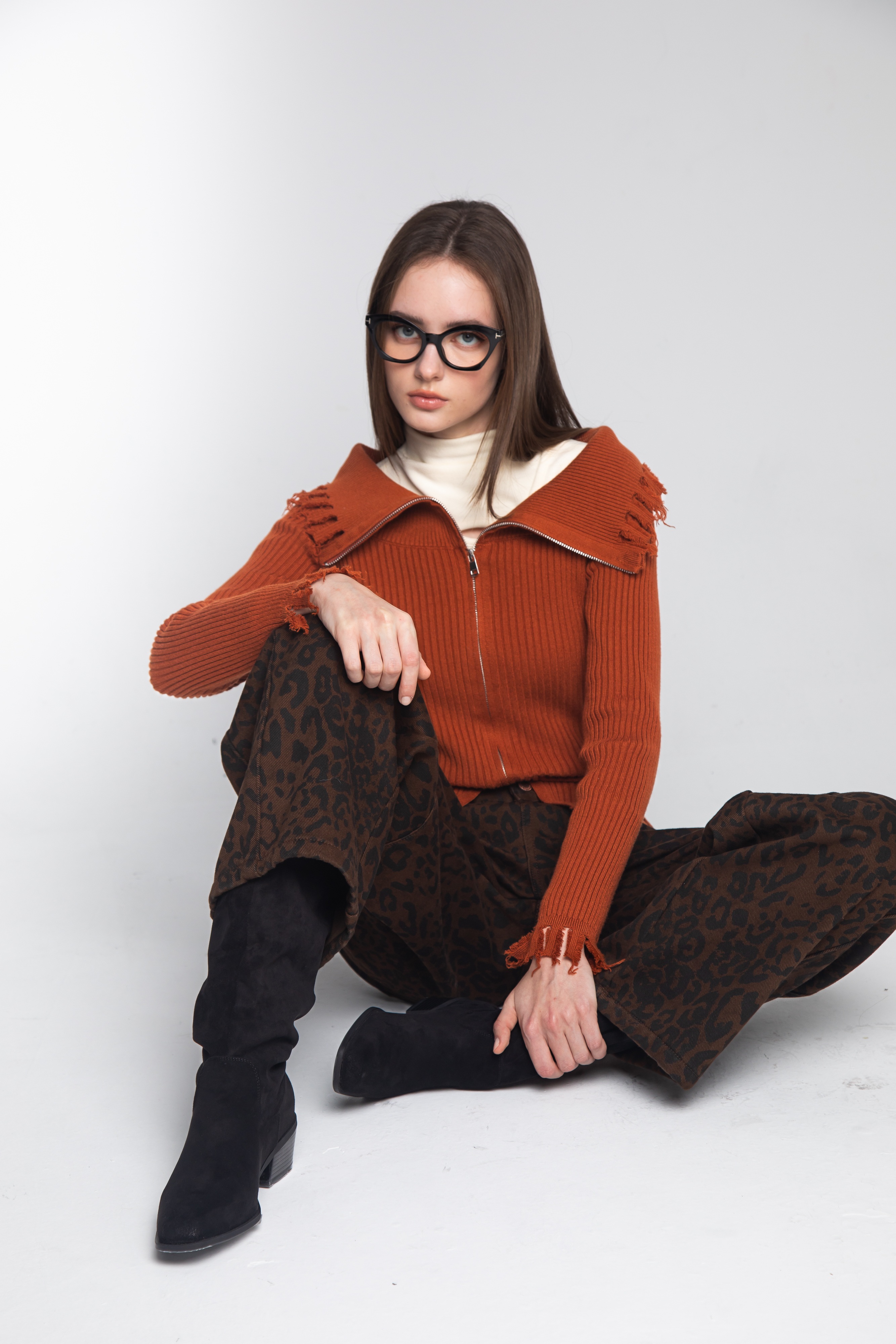這款造型拉鍊上衣,以大膽的色調與充滿叛逆氣息的細節設計,打破了傳統針織衫的單調,展現出富有層次感的都會時尚風采。