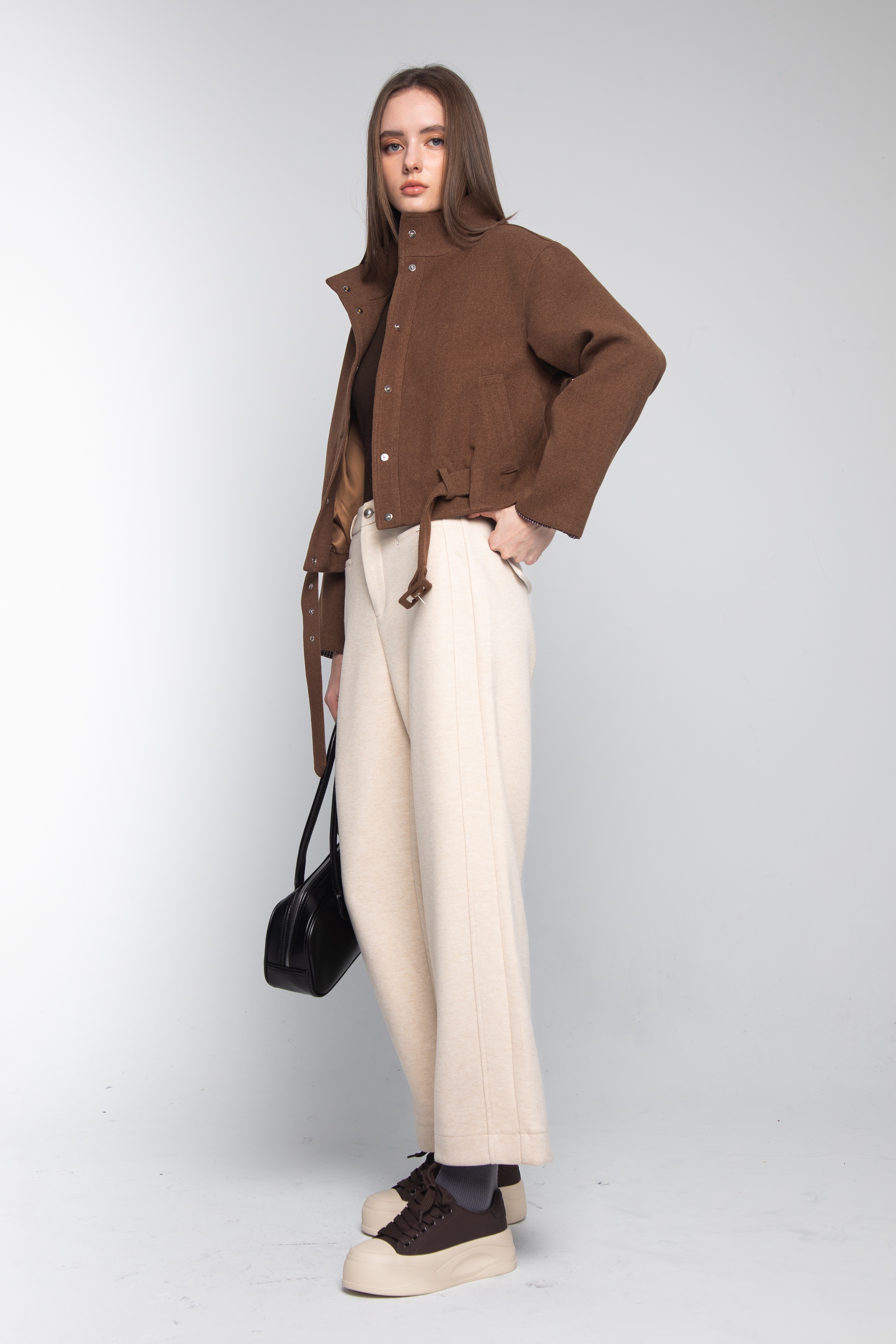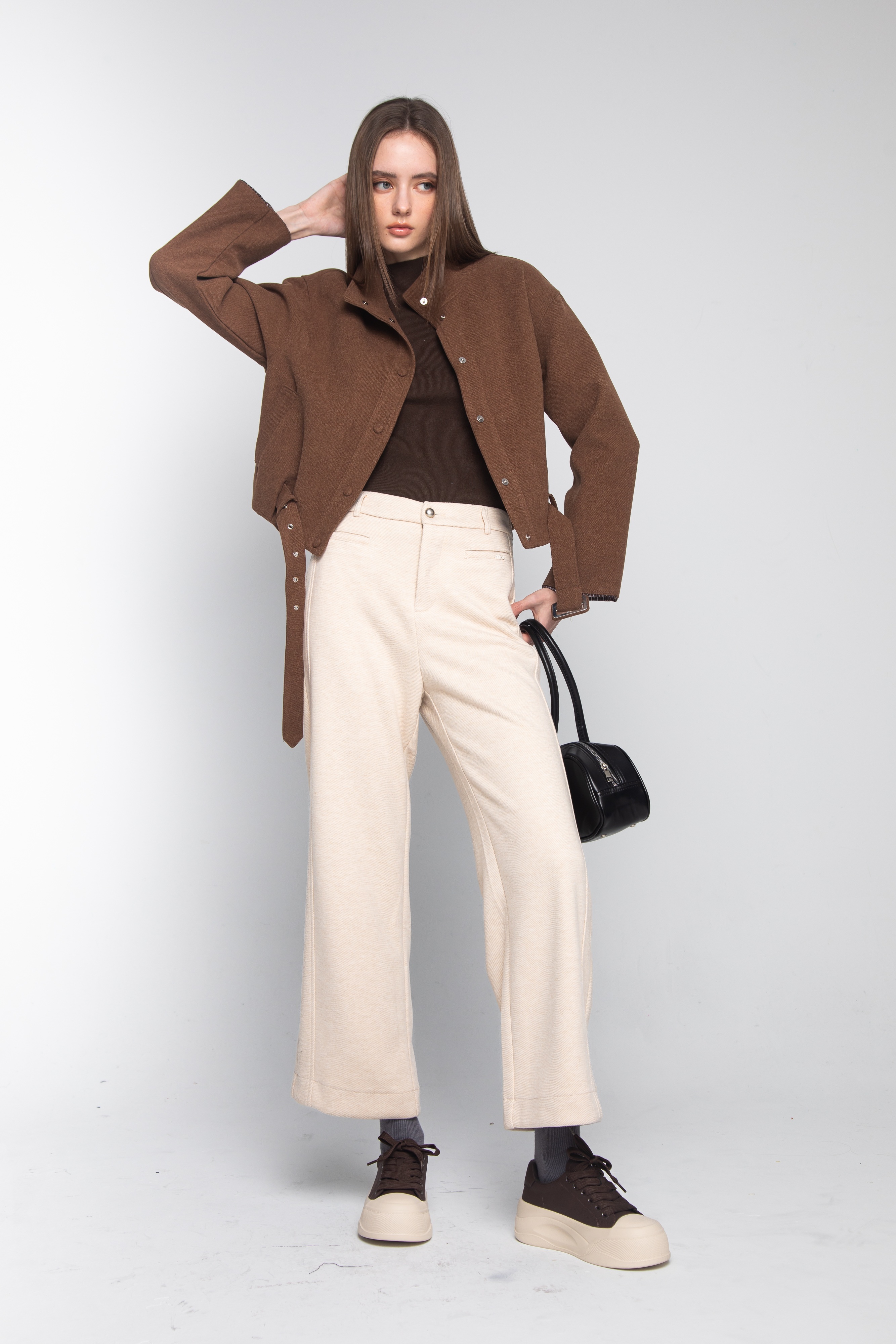 這款時尚直筒長褲,提供柔和溫潤的米白色等多樣選擇,採用具備厚度的保暖面料,配合俐落的縱向線條設計,旨在為都會女性打造兼具舒適度與修身效果的日常單品。