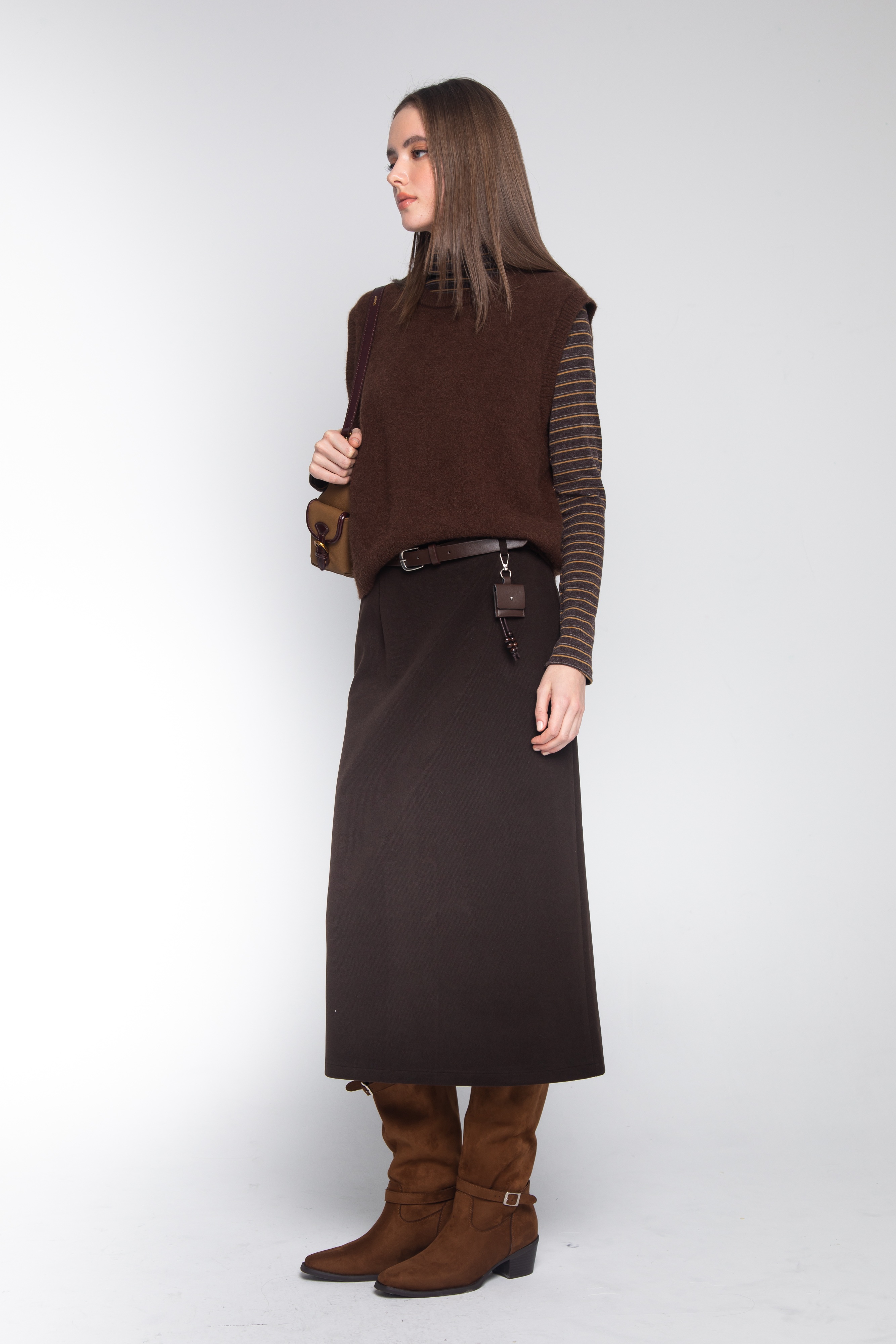 這款時尚 A 字中裙提供濃郁的深咖啡色等種選擇,利用具備厚度與支撐力的面料,打造出極具包容性的 A 字廓形,是冬日穿搭中兼具氣質與顯瘦效果的靈魂單品。