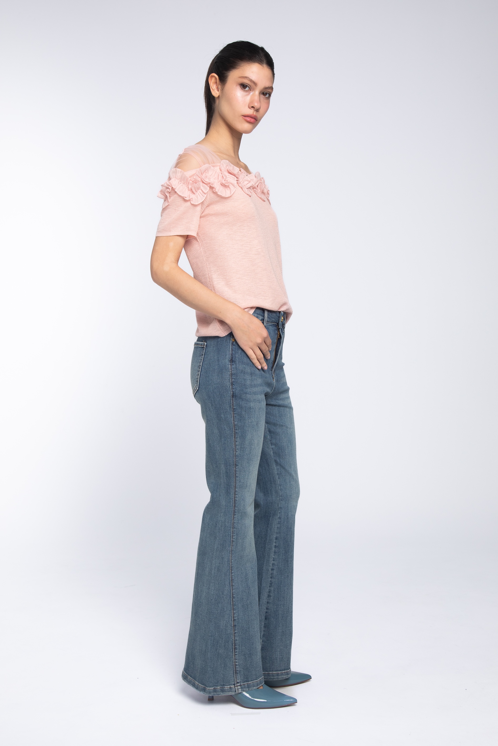 這款透紗針織上衣,以溫柔顯白為基調。設計師巧妙地將輕盈的薄紗與細緻的針織面料拼接,打造出極具層次感的視覺焦點,在舉手投足間散發出甜美而不失女人味的優雅氣息。