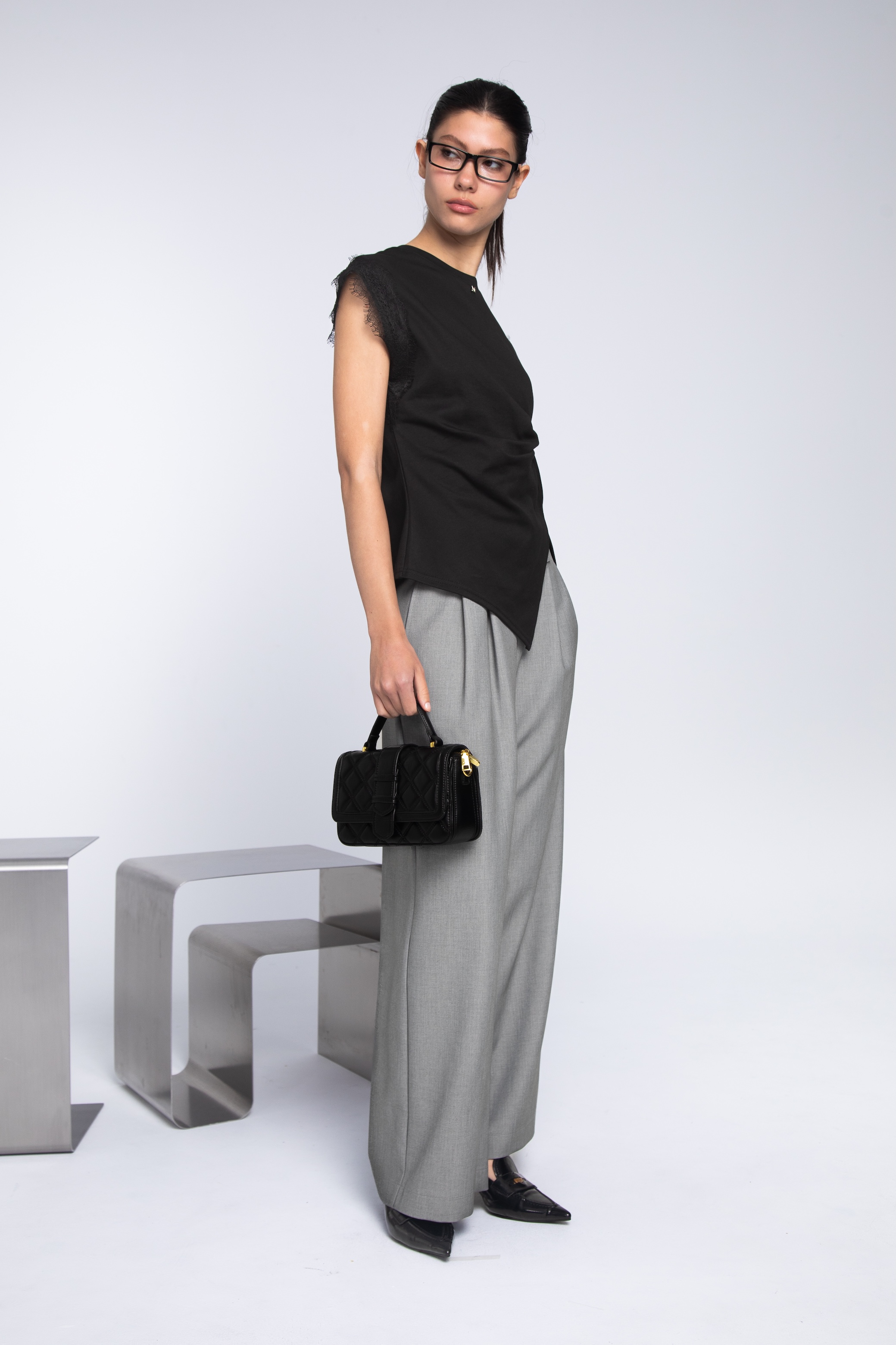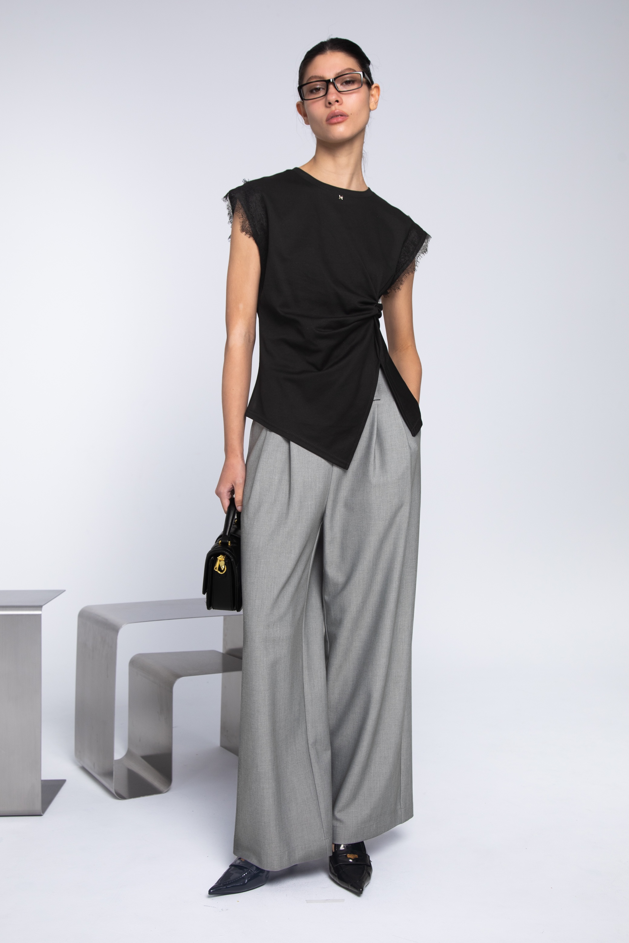 這款褶子闊腿長褲,以自帶高級感與專業氣場的質感冷灰色為基調。透過精準的立體打褶工藝與極致流暢的寬口剪裁,將西裝褲的硬挺與休閒褲的鬆弛感完美結合,在跨步之間盡顯從容自信的大將之風。
